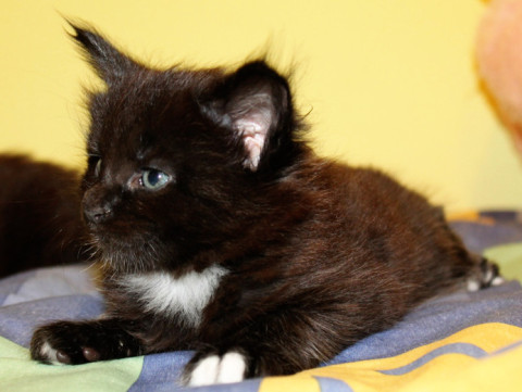 Kenya fue la primera en nacer, y es la primera en todo. Gran ronroneadora, pide mimos y atenciones de todos los que se acercan a verla. Extremadamente sociable con los niños y otros animales, lo unico que quiere es jugar y disfrutar de unas buenas caricias.
